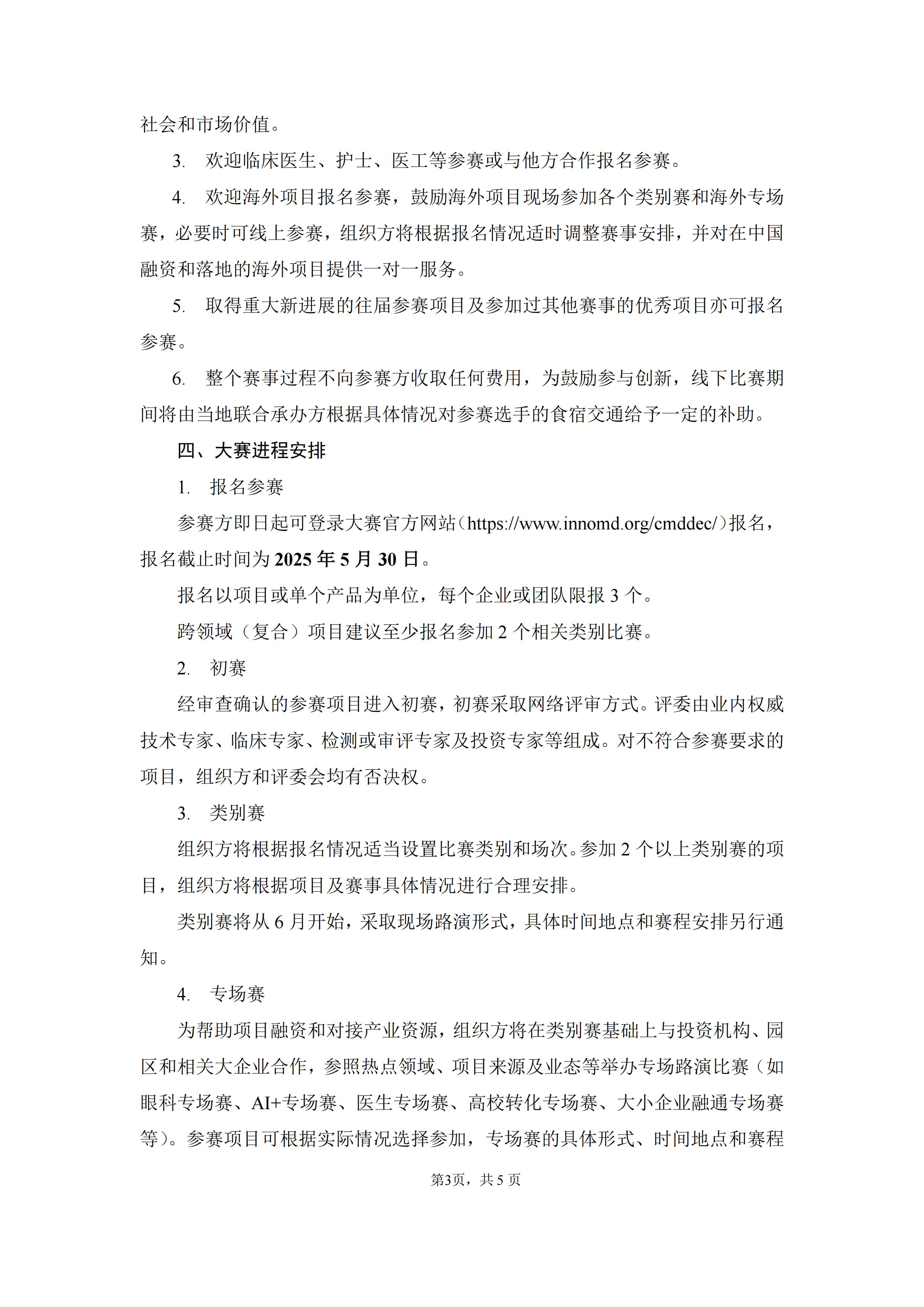 参赛方即日起可登录大赛官方网站(医疗器械创新网网://lctjgg.com/cmddec/)报名,报名截止时间为2025年5月30日。